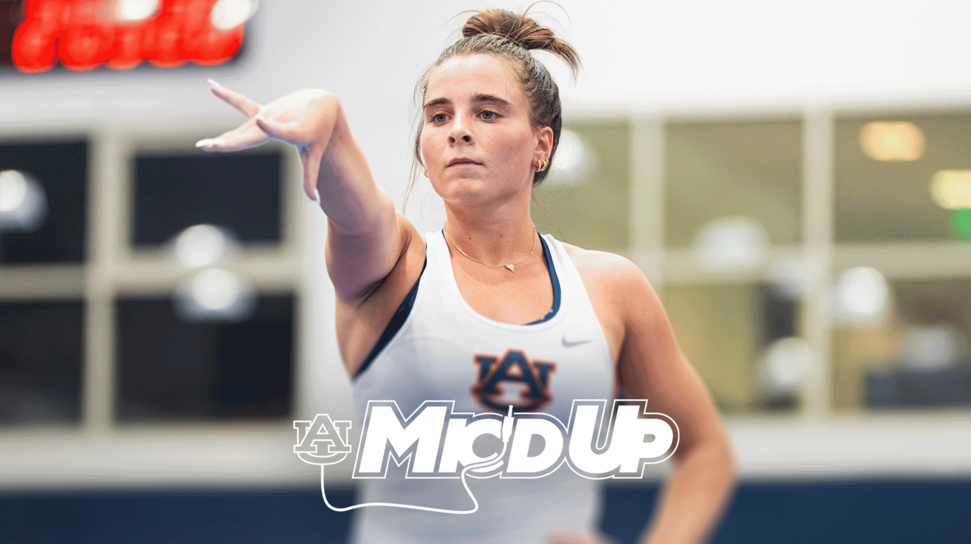 Junior Julianne Huff is wired for sound during gymnastics practice.