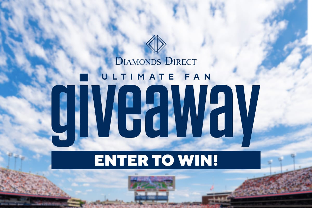 Are you ready to win big, Tigers fans? Enter the Diamonds Direct Sweepstakes for your chance to win a "His and Hers" package including themed cuff links and diamond huggie earrings, and the ultimate game day experience that includes two (2) tickets to the Auburn vs. Georgia, two (2) pre-game hospitality passes, two (2) sideline passes and Auburn fan gear.