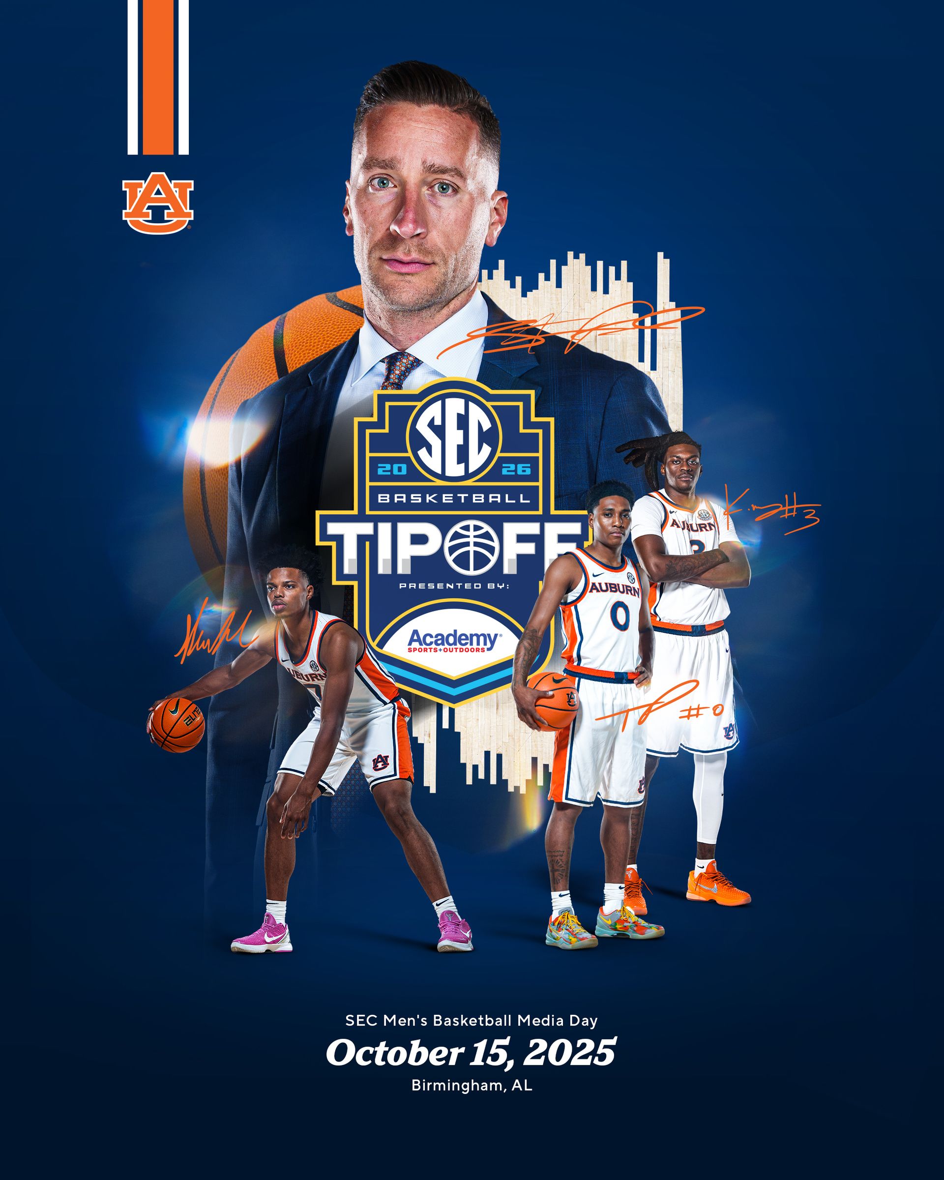 🔼 Representing Well. Auburn men’s basketball will be represented by Coach Steven Pearl, Keyshawn Hall, Tahaad Pettiford and KeShawn Murphy at the SEC Basketball Tip-Off. They’ll talk Tiger hoops on Oct. 15 in Birmingham.