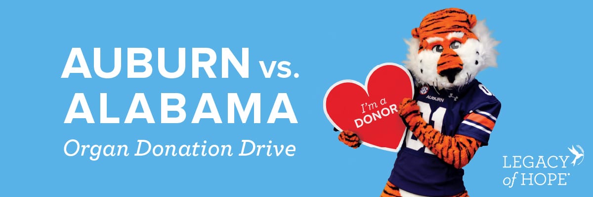 Join us by participating in the latest chapter of the country’s best rivalry to see which school can register the most new organ donors. It’s a friendly competition with serious stakes, since every organ donor can save up to eight lives. So register today to help your school. And someone in need.