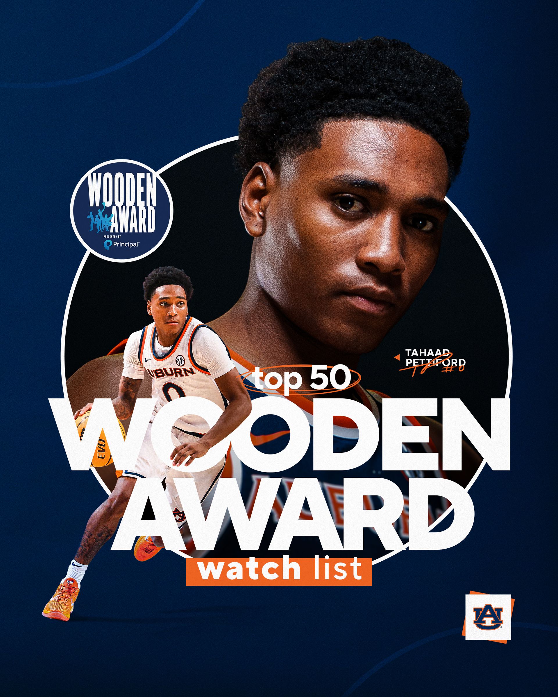 On The List. Auburn men’s basketball’s Tahaad Pettiford has landed on the Top 50 Wooden Award Watch List! The Wooden Award recognizes the most outstanding player in college basketball.