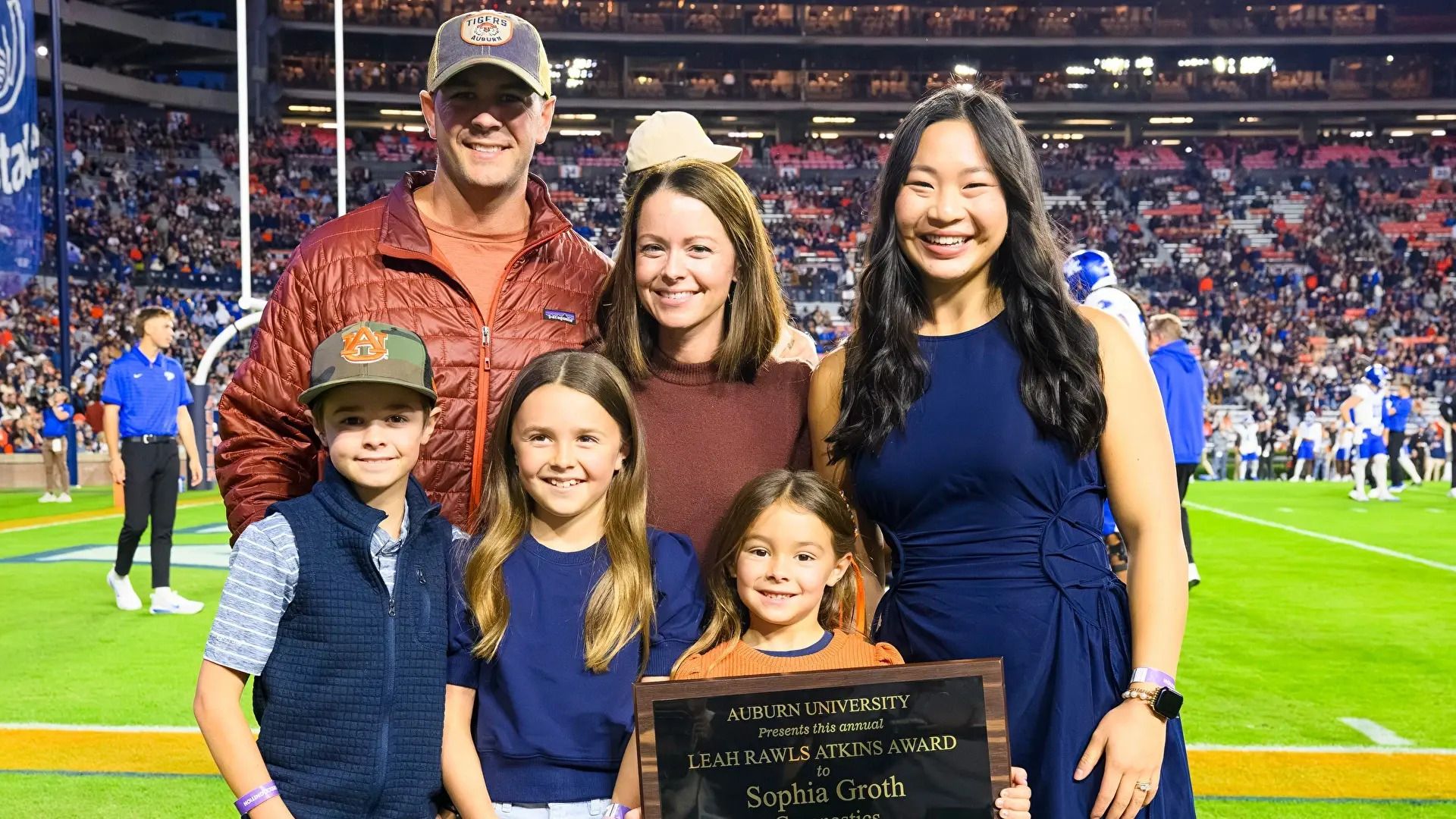 Highest Honor. Former Auburn gymnast Sophia Groth Davila received the 2025 Leah Rawls Atkins Award for excellence in academics and athletics. The award recognizes a student-athlete who models leadership, integrity, and courage. Groth Davila, now working in athletics development at SMU, expressed gratitude for the award and the opportunities Auburn provided her.
