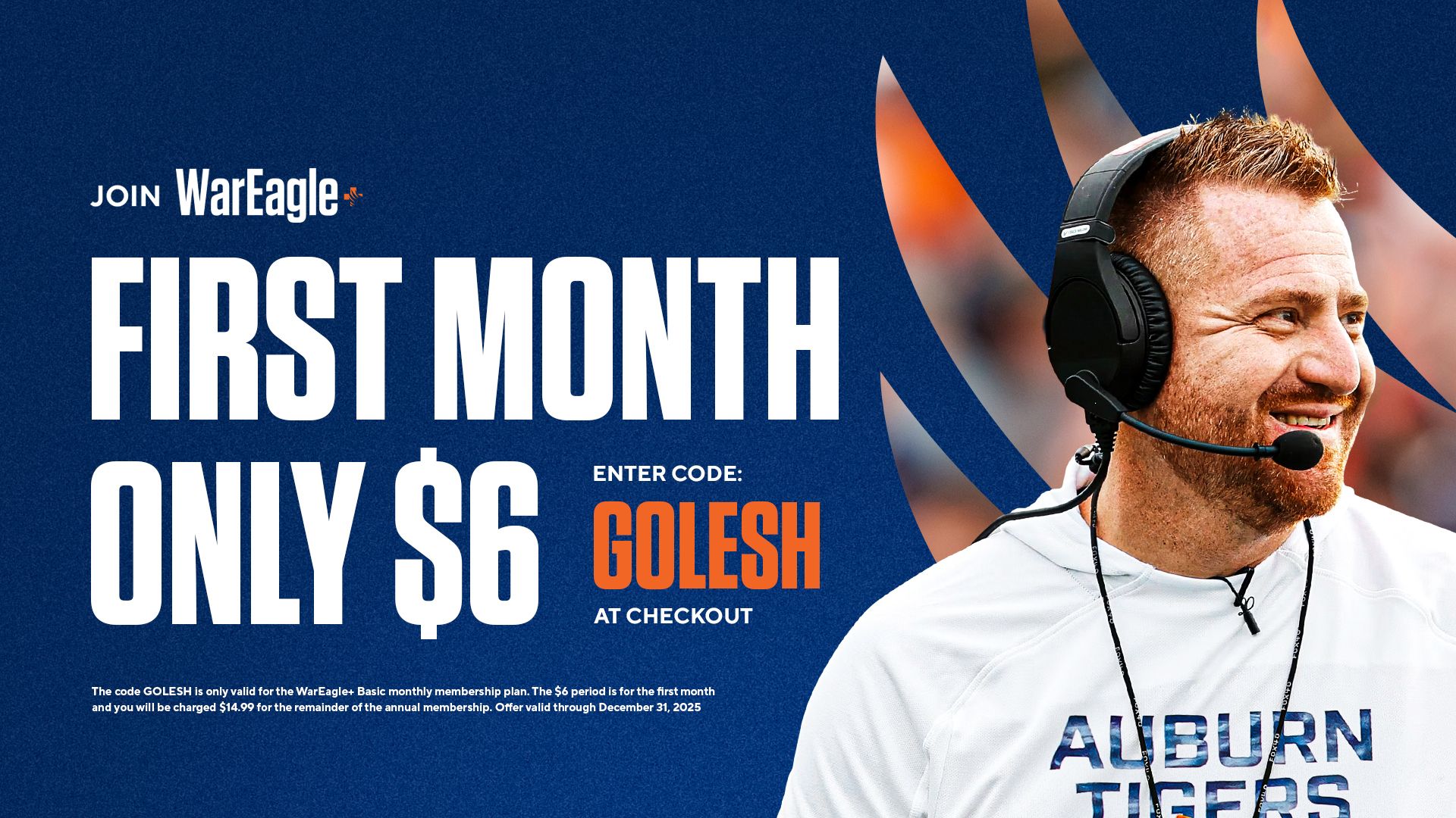 Don't miss any of the behind-the-scenes content as Coach Golesh gets started on The Plains! Join WarEagle+ today with the WarEagle+ Basic monthly plan and get your first month for only $6 using the code GOLESH at checkout.