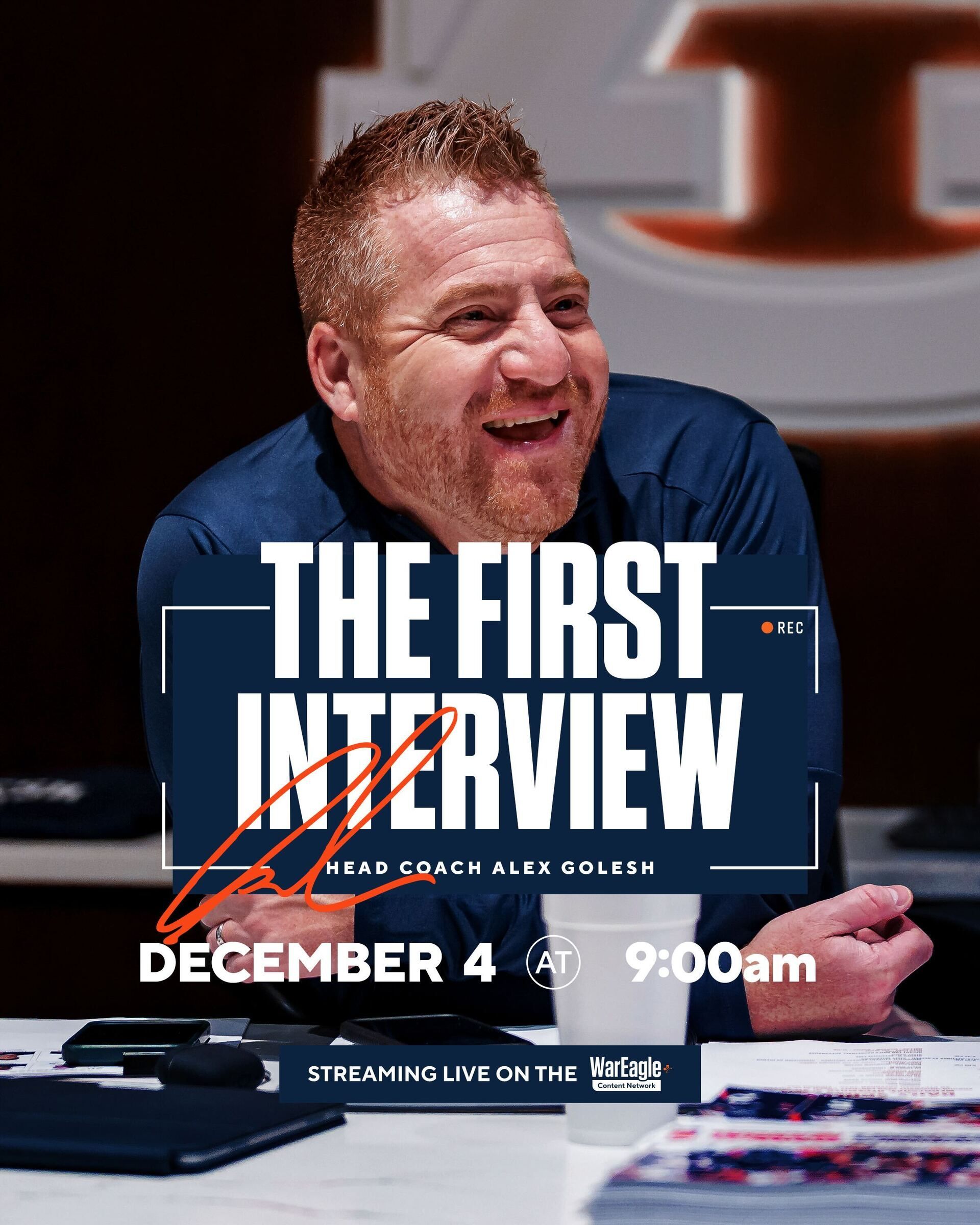 Alex Golesh sits down with Andy Burcham for his first official interview as Auburn’s head football coach! Fans can watch the interview live on the WarEagle+ Content Network at 9 a.m. CT.