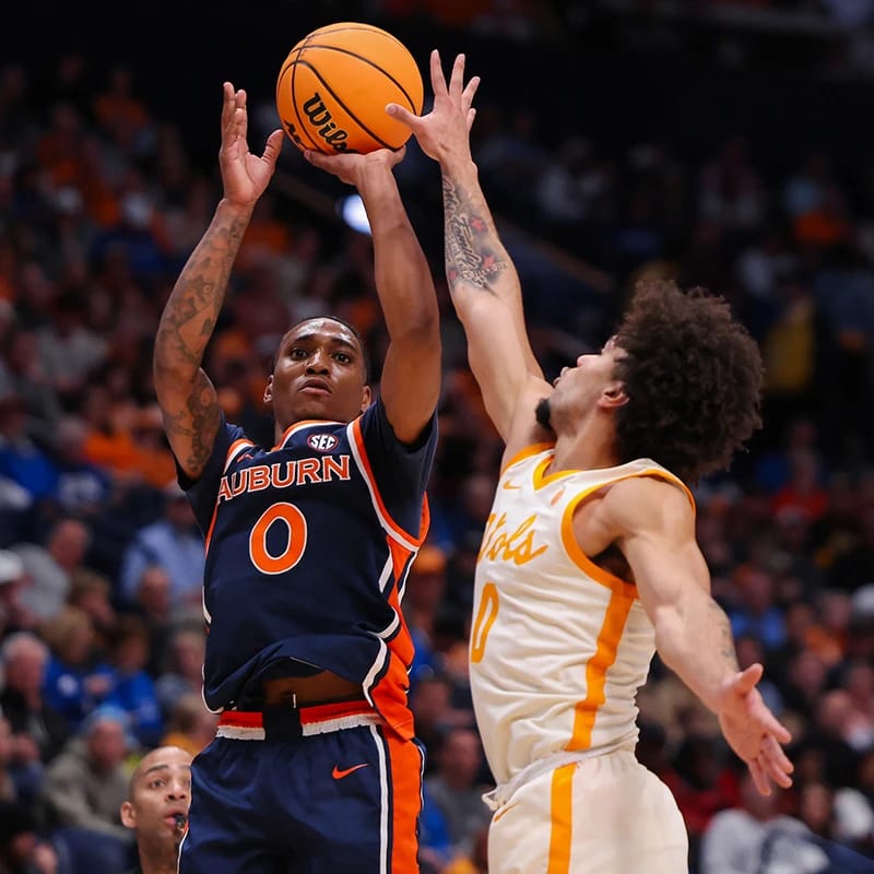 🔼 Fell Short. Tahaad Pettiford scored 28 points, but Auburn fell to Tennessee 72-62 in the SEC Tournament. Tennessee went on a 20-0 run in the second half to secure the win. Auburn, now 17-16, hopes for an NCAA Tournament bid despite the loss.