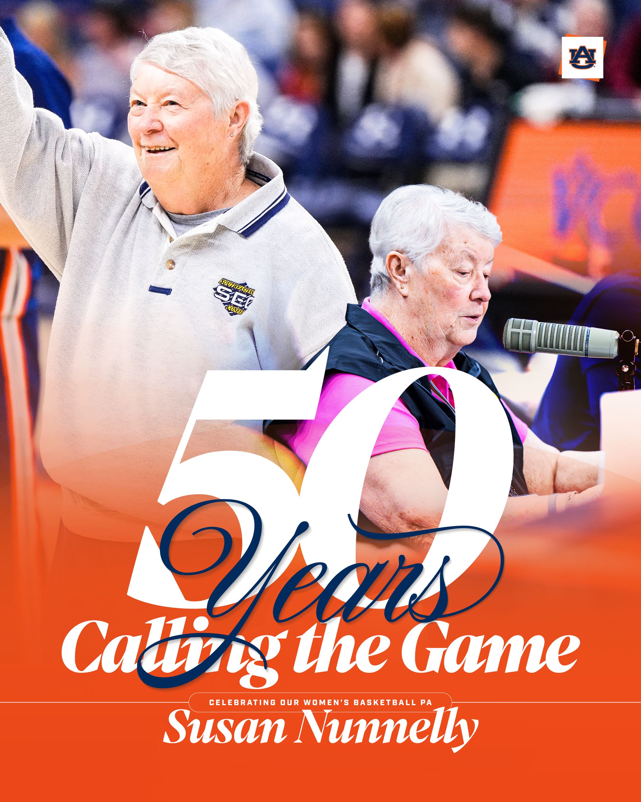 Good Morning, Auburn Family! Congratulations to Susan Nunnelly on completing her 50th year at the scorers table behind the PA microphone!