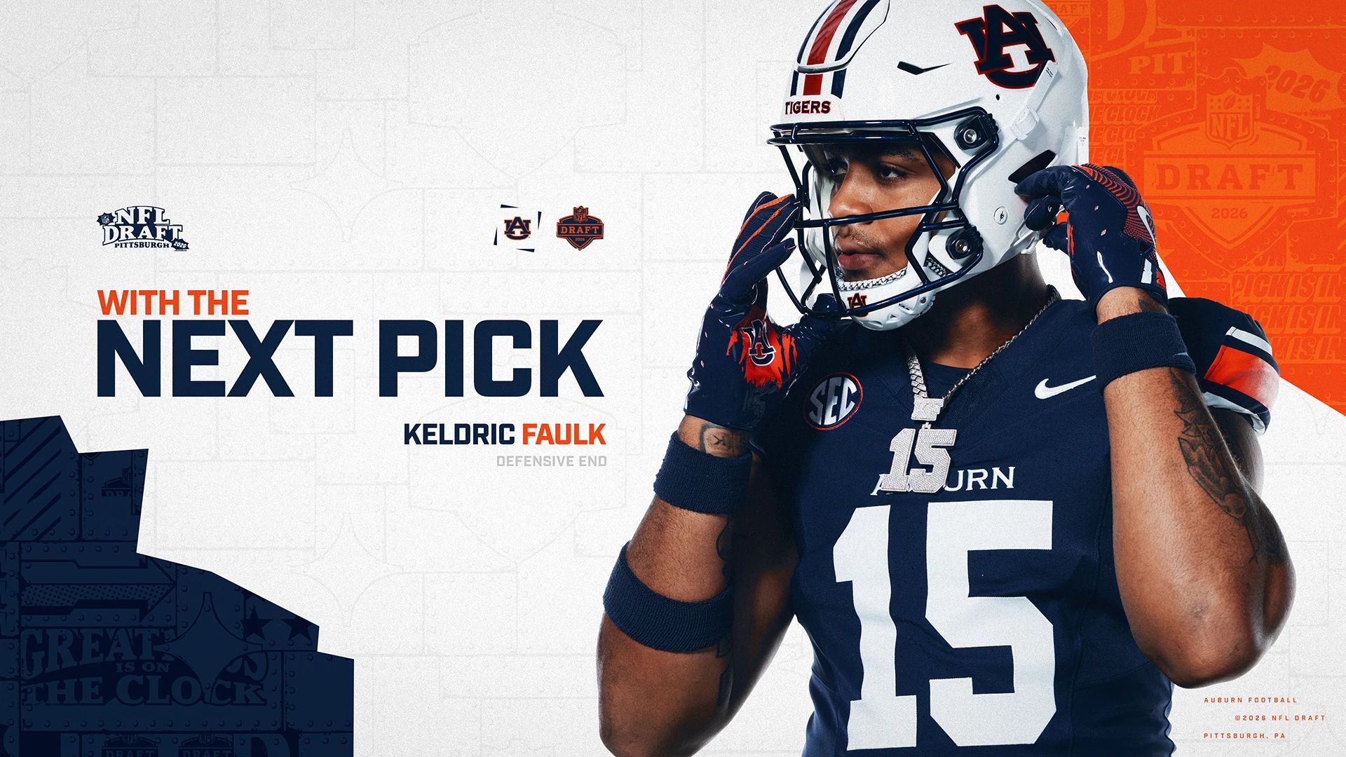🔼 With The Next Pick. Former Auburn standout Keldric Faulk is projected to be a first-round pick in the 2026 NFL Draft. Faulk earned All-SEC honors last season and is praised for his length, athleticism, and strength. He is expected to be a productive NFL starter early in his career.